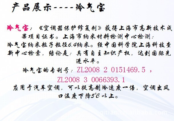 我們駕車長途跋涉,不可避免遭遇惡劣環(huán)境,『新能量』將成為愛車的最后一道保護線:——引擎寶、齒輪寶能夠讓車輛夠承受惡劣工況;省油寶能夠改善燃油品質(zhì);冷氣寶能夠讓您車內(nèi)降溫更快、更低……