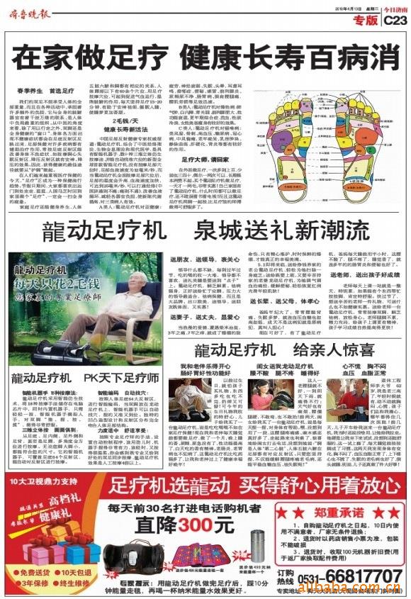 “龍動(dòng)”品牌足療機(jī)在齊魯晚報(bào)的全版廣告!