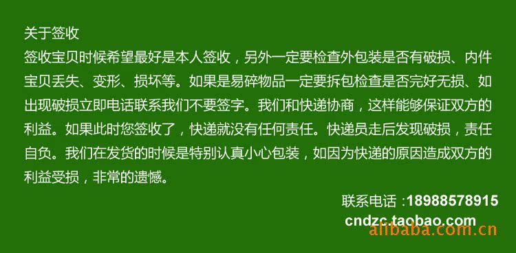 本店默認(rèn)快遞為天天快遞,運(yùn)費(fèi)按照所購(gòu)產(chǎn)品包裝后重量計(jì)費(fèi),分為首重和續(xù)重計(jì)算,具體費(fèi)用拍下寶貝時(shí)聯(lián)系客服人員修改運(yùn)費(fèi)后付款。