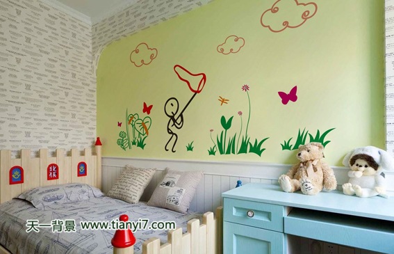 用模具在墻上“繪”畫。墻就是一副生動(dòng)的畫!