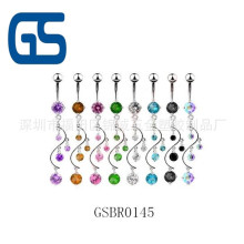S形嵌鉆肚臍環(huán) 不銹鋼樹(shù)枝形狀肚臍環(huán) 廣東出口鈦鋼穿刺肚臍環(huán)