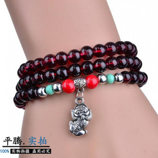 2元店貨源民族風(fēng)水晶手鏈 時(shí)尚三圈仿石榴石佛珠手鏈 地?cái)偀豳u
