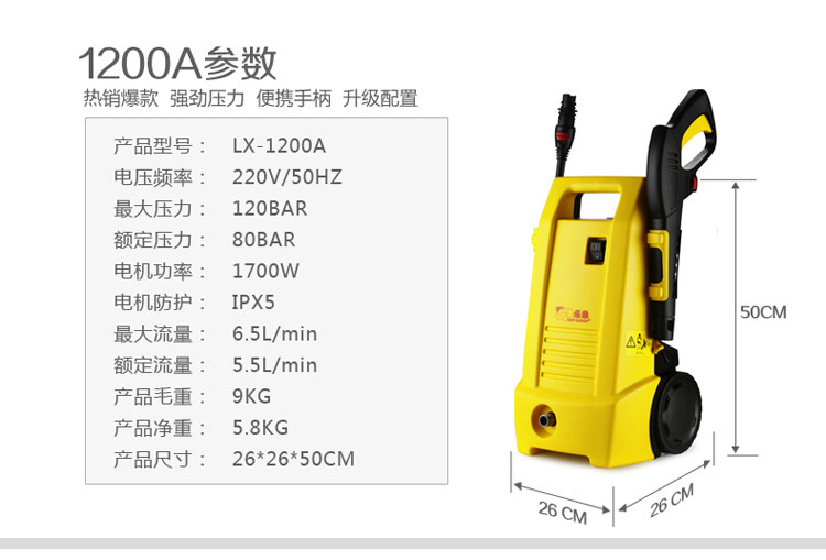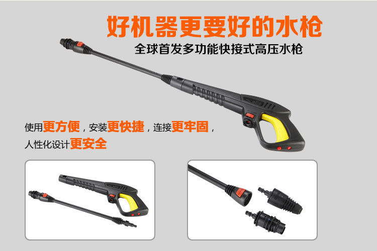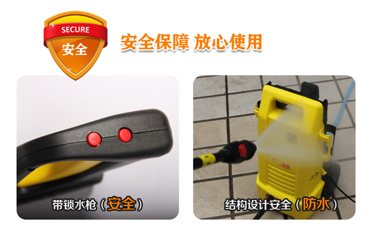 該款機(jī)器定位是家用高壓洗車(chē)機(jī),1700W超大功率,水壓強(qiáng)勁,洗車(chē)超快;該款機(jī)器采用220V全銅電機(jī)加自吸組件,經(jīng)久耐用;獨(dú)特關(guān)槍停機(jī)功能,節(jié)能環(huán)保;自吸兩用,快插連接,方便快捷;如果是家用清洗、洗車(chē)、洗地、洗墻、洗浴室、沖洗青苔等等可直接下單,絕不會(huì)讓您失望的。(注意:由于機(jī)器壓力比較大,請(qǐng)勿將槍口直接對(duì)人噴射)