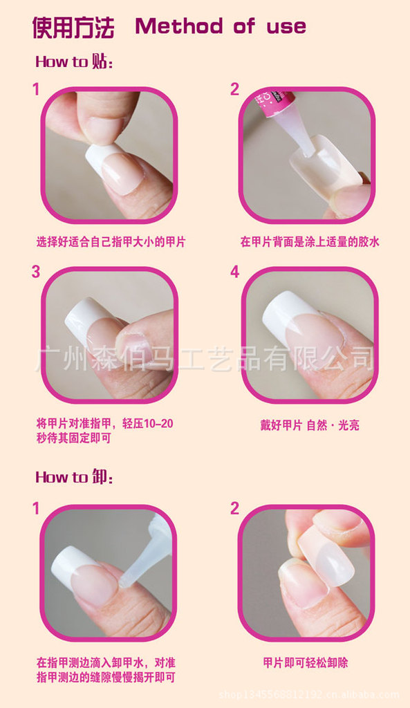 1.每盒都配備進口環(huán)保專業(yè)美甲膠水,不傷指甲,粘性好,就算天天做家務(wù),也一樣可以10天不掉。