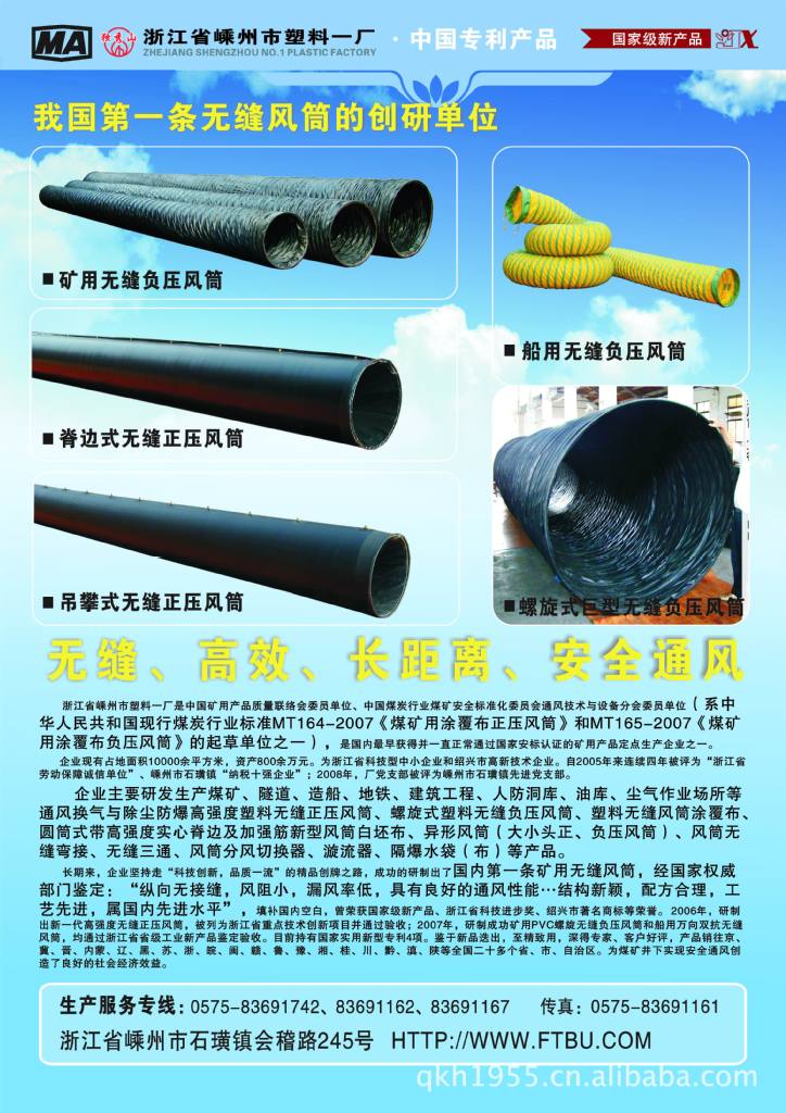 為互利雙贏,使礦用無縫風(fēng)筒項(xiàng)目產(chǎn)生應(yīng)有的經(jīng)濟(jì)、社會(huì)效益。本廠決定面向目前本廠無特約經(jīng)銷單位的區(qū)域定向轉(zhuǎn)讓本廠研制成功的礦用無縫風(fēng)筒成套設(shè)備兩套,轉(zhuǎn)讓后扶持到出合格產(chǎn)品能自力正常生產(chǎn)。價(jià)格分別為80萬元/每套和170至250萬元/ 套(根據(jù)不同產(chǎn)、質(zhì)量要求轉(zhuǎn)讓不同成套設(shè)備;目前本廠或本廠代理經(jīng)銷商已經(jīng)形成一定銷售市場(chǎng)的地區(qū)不轉(zhuǎn))。同時(shí)長(zhǎng)年直供配套阻燃圓筒內(nèi)膜和圓筒無縫風(fēng)筒白坯布,機(jī)不可失,歡迎聯(lián)系。