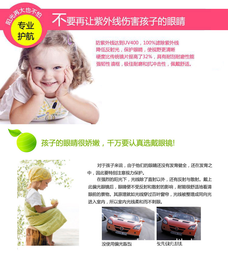 其實保養(yǎng)太陽眼鏡的方法就像保養(yǎng)一般眼鏡,清洗、收疊、存放都要養(yǎng)成習慣。只不過太陽眼鏡經(jīng)常脫脫戴戴,一不小心就會刮傷,所以有一些小細節(jié)要特別提醒您:太陽眼鏡有污點粘附時,可別用指甲去摳,很容易就會刮傷傷表面的。