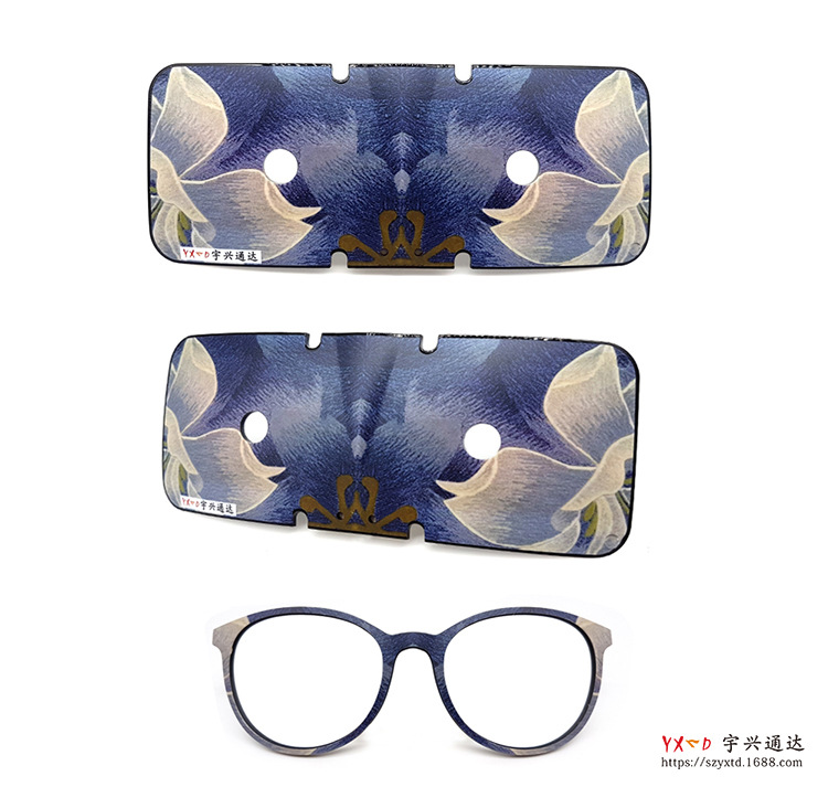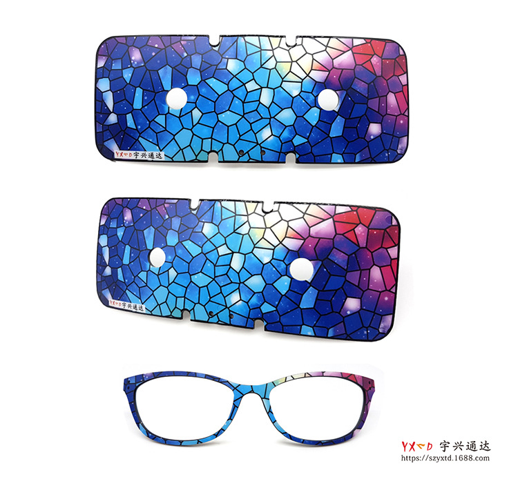 宇興通達外貿(mào)花色TR眼鏡框采用先進技術(shù)——模內(nèi)注塑枝術(shù),即將已印刷好的圖案膜片放入塑膠模內(nèi)注塑,而后緊密貼合,最后實現(xiàn)結(jié)構(gòu)功能及裝飾雙重效果的過程。使得外貿(mào)眼鏡框美觀、時尚、高端大氣,同時有抗老化,防輻射等特性,能通過30多項可靠性測試。