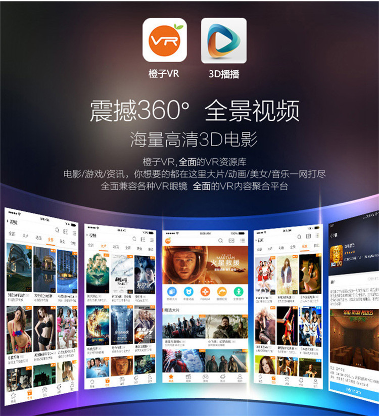 【使用方法】:手機(jī)上下載橙子VR、3D播播等3D播放器,手機(jī)打開視屏,將手機(jī)卡入眼鏡卡槽進(jìn)行觀看,即可實(shí)現(xiàn)3D效果。