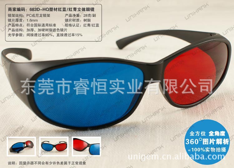 PC鏡框或者ABS鏡框.鏡片0.18或者加厚到0.72MM TAC偏光鏡片,并做UV380處理,雙面TAC復合并加硬. 是配合立體電影.立體電視使用的偏光鏡. 適用范圍:3D影院.家庭3D影院。,此眼鏡3D電影眼鏡具備高精度立體眼鏡功能.