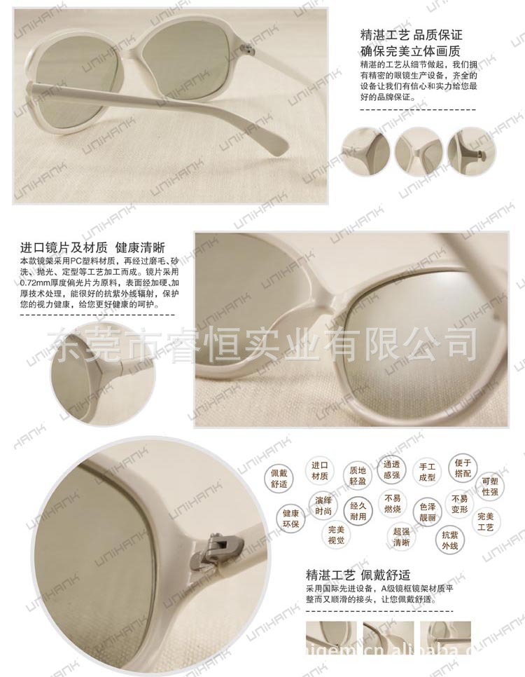 睿恒實業(yè)有限公司(unihank)于2006年成立,現(xiàn)位于廣東東莞,是領(lǐng)先于業(yè)界的立體方案、立體眼鏡、立體設(shè)備的高科技企業(yè)。Unihank擁有偏光片研發(fā)中心(組建中)、三維光學(xué)研發(fā)中心(組建中)兩家領(lǐng)先于業(yè)界的技術(shù)團(tuán)隊作為最緊密的研發(fā)合作伙伴,并聚集了一批業(yè)界的精英,在產(chǎn)品研發(fā)領(lǐng)域處于行業(yè)水平。