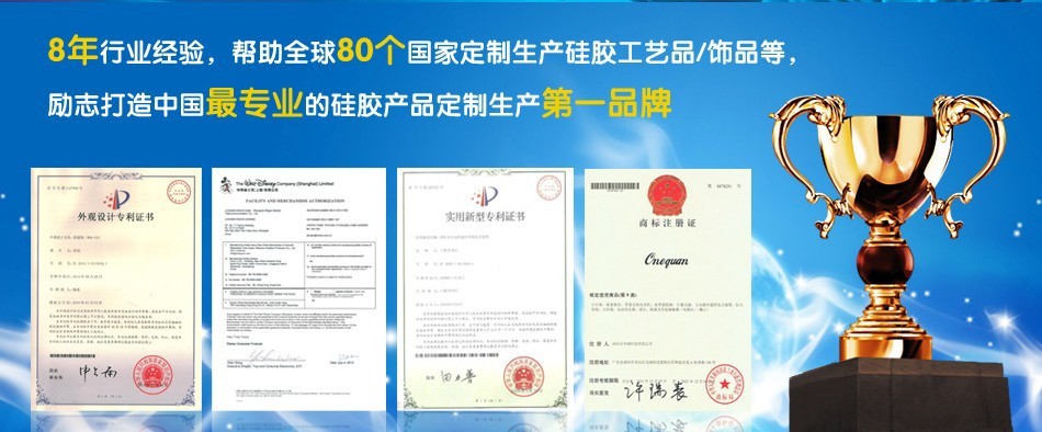 深圳萬全盛硅橡膠制品有限公司:是一家專業(yè)生產(chǎn)各種硅橡膠制品的廠家,擁有標(biāo)準(zhǔn)廠房2000多平方米,八臺(tái)硫化機(jī),六條滴膠生產(chǎn)線,兩臺(tái)高周波電壓機(jī),產(chǎn)品包括硅膠制品(iphone5手機(jī)套,二維碼手環(huán),拍拍表,新開發(fā)硅膠眼睛掛繩,硅膠筆記本,圣誕樹底座,硅膠杯墊等)和軟膠制品(軟膠U盤套,軟膠手機(jī)套,滴膠,鑰匙扣等)新開發(fā)促銷禮品。