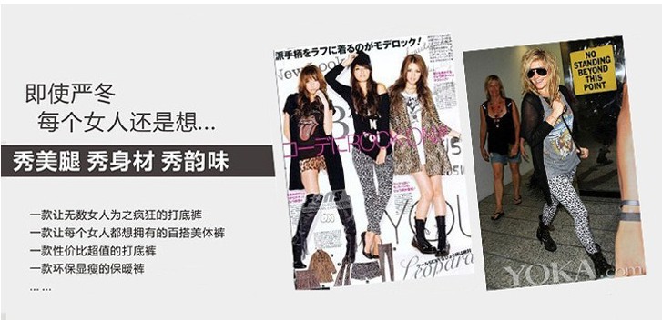 新款 女式時尚豹紋雙層打底褲 加厚 保暖褲 棉褲 可內(nèi)外兩穿