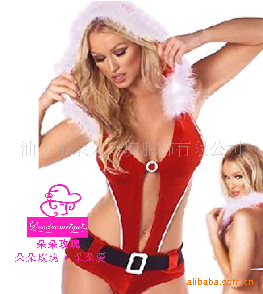 性感仿真絲,游戲制服嫵媚圣誕裝,性感無極限玫色露背鏤空情趣圣誕裝