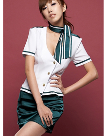 綠色空姐裝,漂亮制服激情showgirl,cosplay展會(huì)