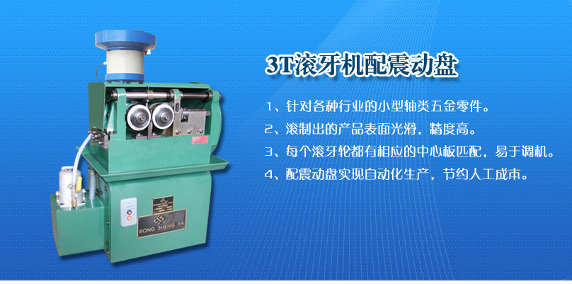 3T滾牙機是一款方便簡單的螺紋加工機,他的加工精度遠超曾經(jīng)老式的搓絲機,為達到產(chǎn)品更高的要求。我公司還專業(yè)改自動化生產(chǎn),節(jié)約人工成本,提高生產(chǎn)效益 .