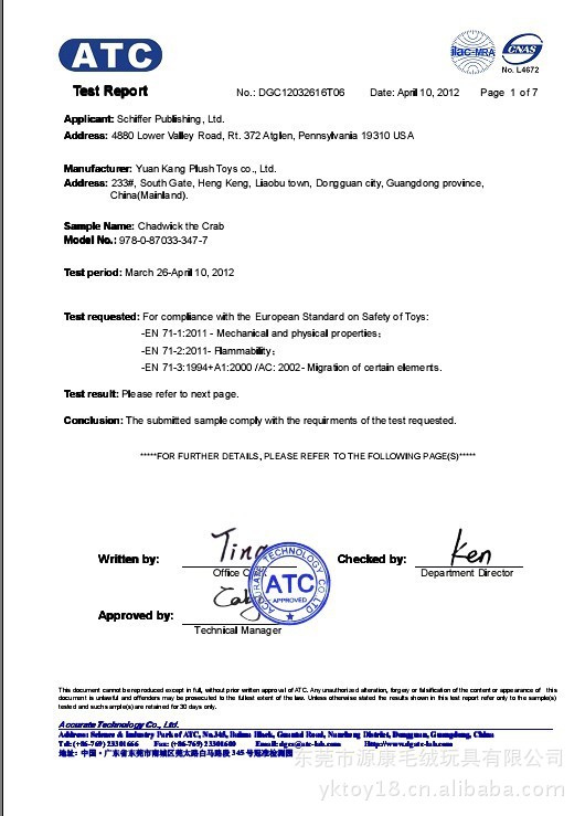 尺寸可根據(jù)客戶需要定做高8cm-2.5M玩具面料可定做超柔、邊綸布、CVC、毛巾布、PV絨、密絲絨、菊花絨、賽樂絨、珊瑚絨、南韓絨、毛料等多種面料,所有材料均為環(huán)保材料填充環(huán)保PP棉,泡沫粒子或者膠粒,也可填充香料、竹炭包等工藝五官、Logo、花紋等可刺繡、絲印或者熱轉(zhuǎn)印商標(biāo)可根據(jù)客戶圖檔制作印嘜、織嘜或商標(biāo)包裝單個產(chǎn)品入一個PE(或者OPP)膠袋,再入外箱包裝。 也可根據(jù)客戶需要定做紙盒、PVC(或者PET)盒子單價可報出廠價、FOB價格,工廠可開17%增值稅產(chǎn)品認(rèn)證可通過CE、EN-71、ASTMF963、CPSIA等玩具出口歐美標(biāo)準(zhǔn)! 以下有證書展示,歡迎聯(lián)系業(yè)務(wù)員索取報告查詢!工廠認(rèn)證ISO9001:2008質(zhì)量認(rèn)證體系、ICTI、CQC、C-TPAT等