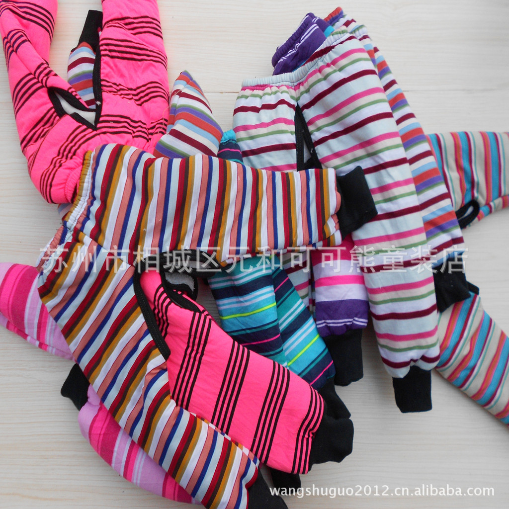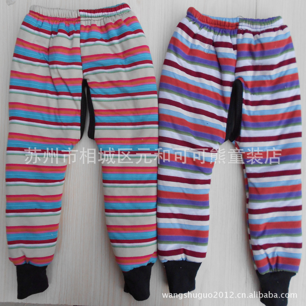 【品名】:羊羔絨加厚開襠棉褲 條紋保暖棉褲 童褲