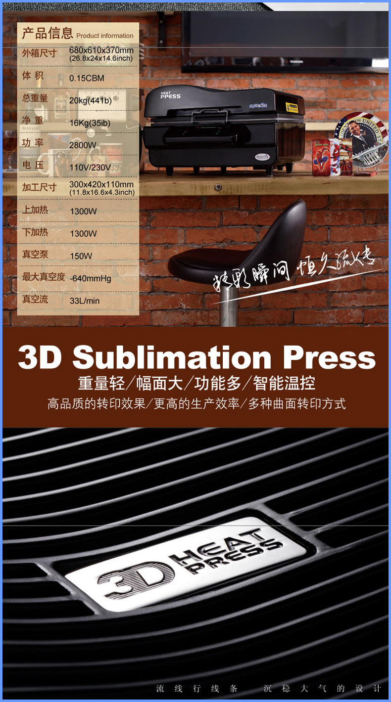 此款多功能3D熱轉(zhuǎn)印機(jī)是目前市場上最銷的熱轉(zhuǎn)印機(jī)型,熱銷海內(nèi)外,操作簡單,一學(xué)就會(huì)。