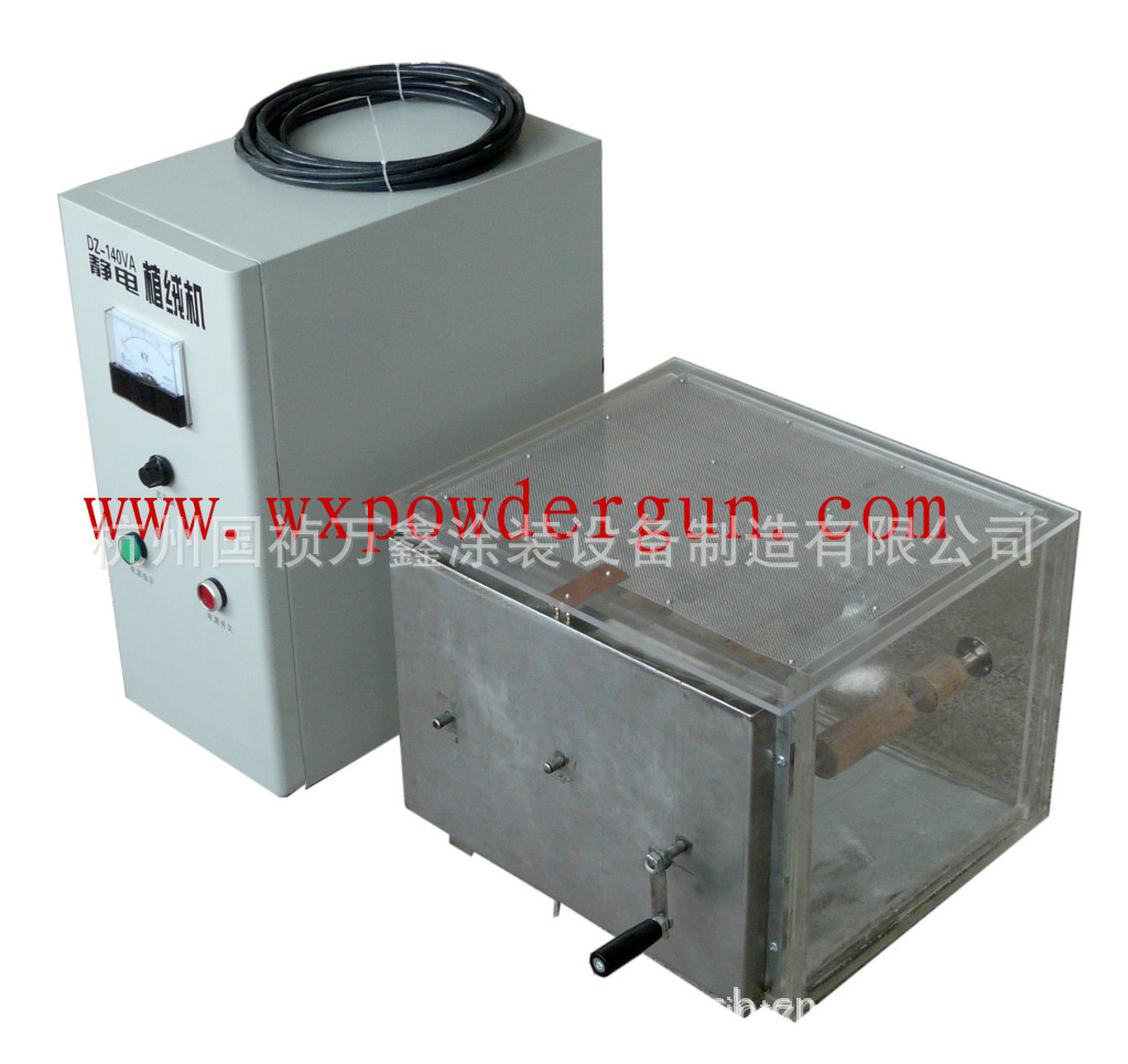 l Working Principle: The electrostatic flocking machine is a high voltage generator. The principle of work is that unlike charges attract each other. When the electrostatic flocking machine working, it generates high voltage and the flock has a negative charge. Put the substrate at a zero potential or earthed. The flock flies vertically onto the surface of the substrate on account of the attraction by the substrate. The substrate was glued before flocking. So the flock stuck vertically onto the surface of the substrate.