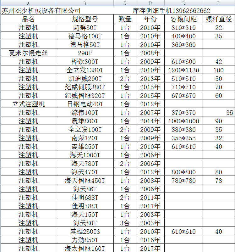 蘇州杰少機械設(shè)備有限公司長年回收銷售二手注塑機、加工中心、慢走絲、模房設(shè)備、機器人、高速沖床,整廠收購,現(xiàn)場免費評估,中介重酬!我公司提供高品質(zhì)的設(shè)備、高水平的服務(wù),滿足客戶需求是我們的經(jīng)營方針,人品、真誠、創(chuàng)新是我公司的文化精神。