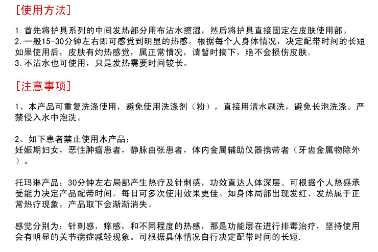 自發(fā)熱護肩;自發(fā)熱護腰;自發(fā)熱護頸;自發(fā)熱護膝;自發(fā)熱護肘;自發(fā)熱護腕;日常保[jian]產(chǎn)品