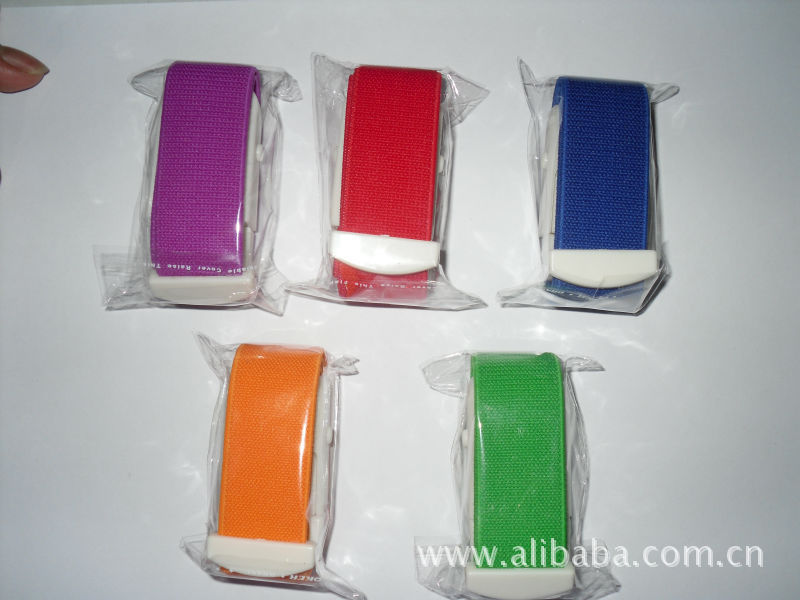 本公司生產(chǎn)的止血帶主要由彈性帶(扁形彈性松緊帶),ABS塑料件(扣盒,插件,手柄)組成。分為:成人型和兒童型兩大類,采用扁型的棉線維彈性帶,較傳統(tǒng)使用的橡皮管,使單位壓力下壓強(qiáng)大大減小,達(dá)到了適度壓迫,減小了病人的不適感和痛感。用于人體靜脈血樣采集過程或靜脈輸液,輸血,采血進(jìn)行靜脈穿刺時(shí)使用。本產(chǎn)品操作簡(jiǎn)單,使用方便