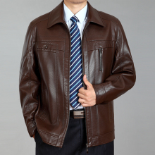 海寧男士皮衣秋冬裝中年男裝休閑短款加絨皮衣翻領(lǐng)修身外套皮夾克已售 0¥218.00
