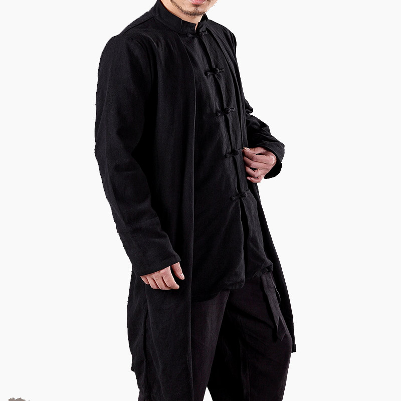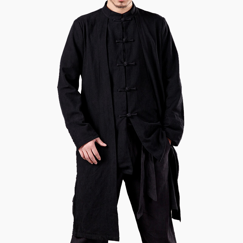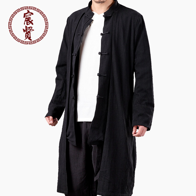 中國風(fēng)唐裝男士棉麻休閑外套假兩件男長款青年風(fēng)衣上衣禪服定制