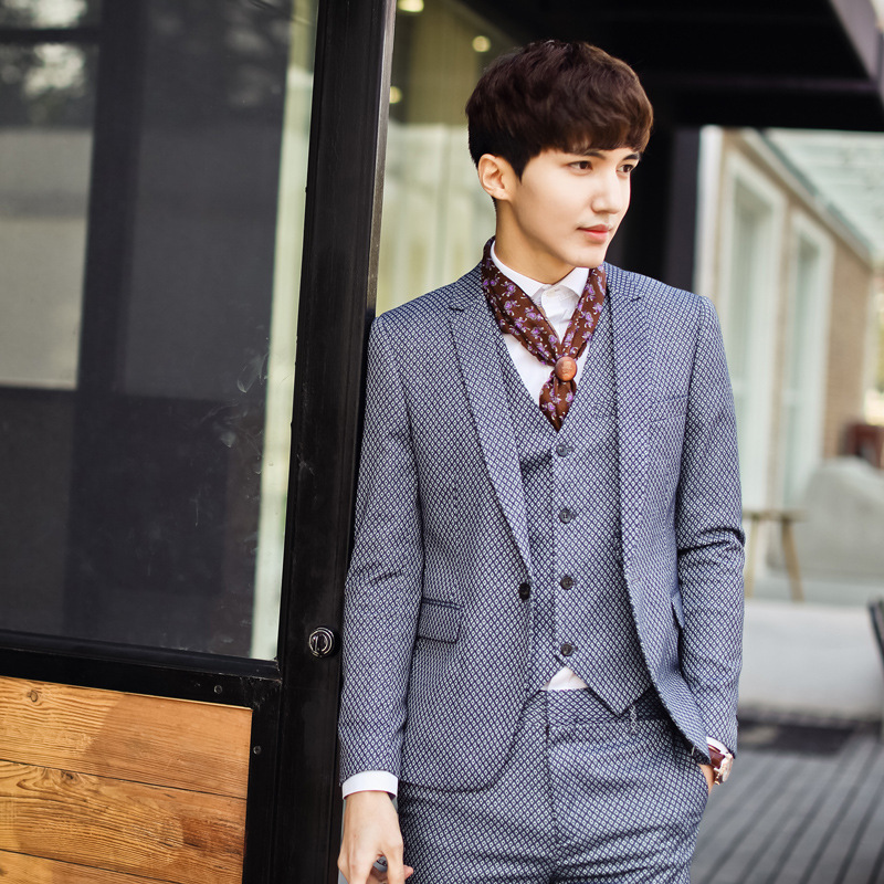 ●品名/Trade name韓國(guó)模特 個(gè)性點(diǎn)點(diǎn) 型男紳士 氣質(zhì)修身多色男士西服 西裝D05