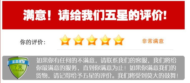 如果你收到貨后,對(duì)我們的產(chǎn)品,服務(wù),發(fā)貨很滿(mǎn)意,記得打5分 哦!