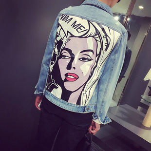 2015秋冬牛仔夾克外套 背后女神印花 修身潮男牛仔衣夾克衫 夜店