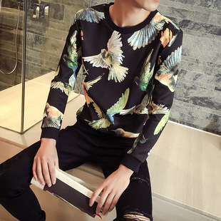 2015街頭街舞飛鳥圖案 休閑太空棉長(zhǎng)袖圓領(lǐng)動(dòng)物印花套頭衛(wèi)衣男