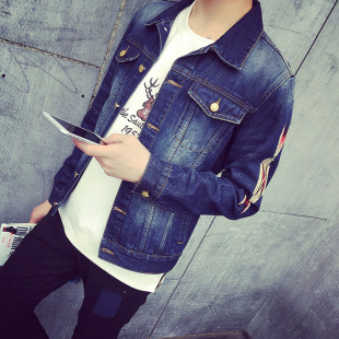 2015秋裝新款 日系歐美港風(fēng)休閑牛仔夾克男修身繡花牛仔外套夜店