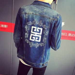 2015秋裝新款 個(gè)性印花歐美休閑牛仔夾克男修身百搭牛仔外套爆
