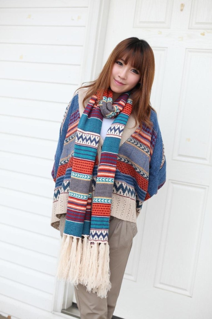 w06809 波西米亞復(fù)古 民族風(fēng)秋冬款女 韓國超長毛線圍巾圍脖披肩