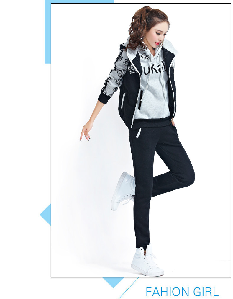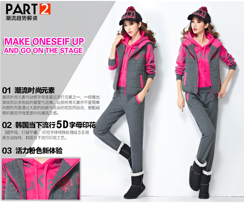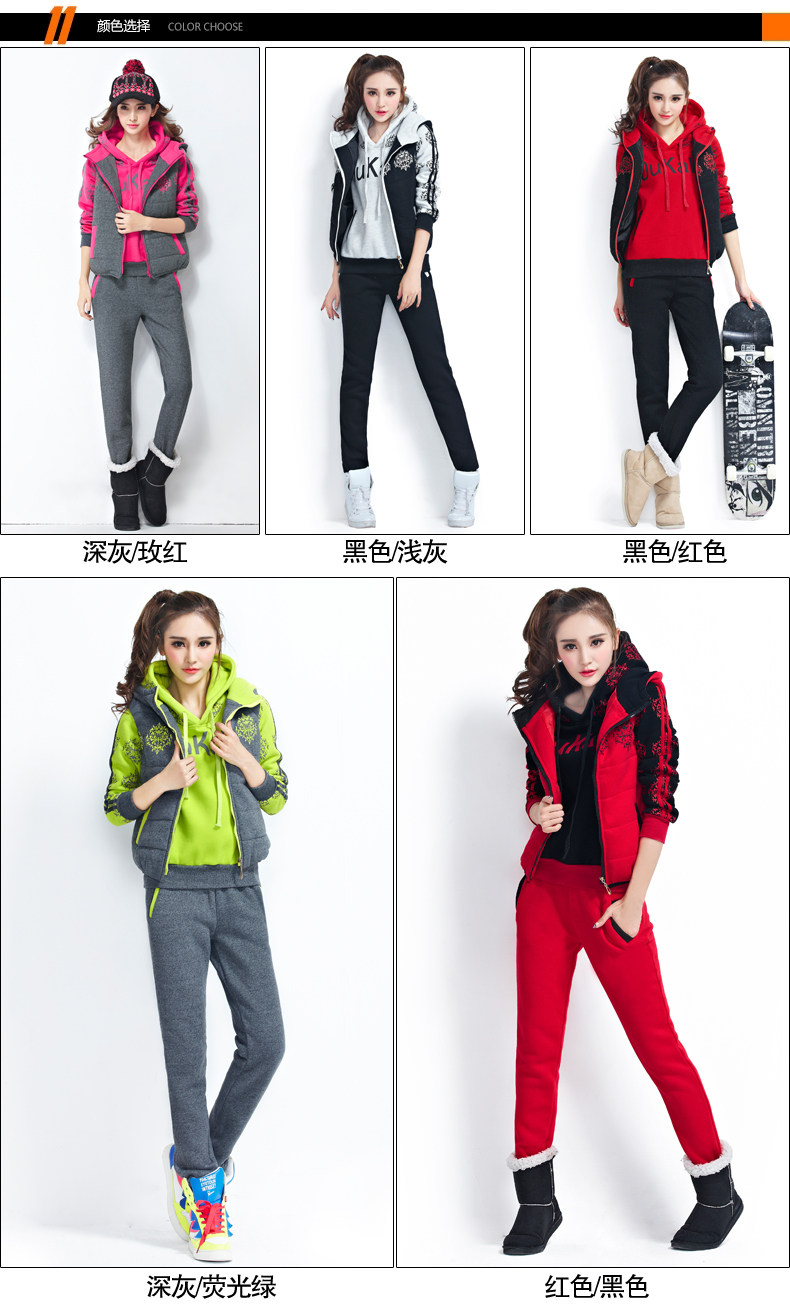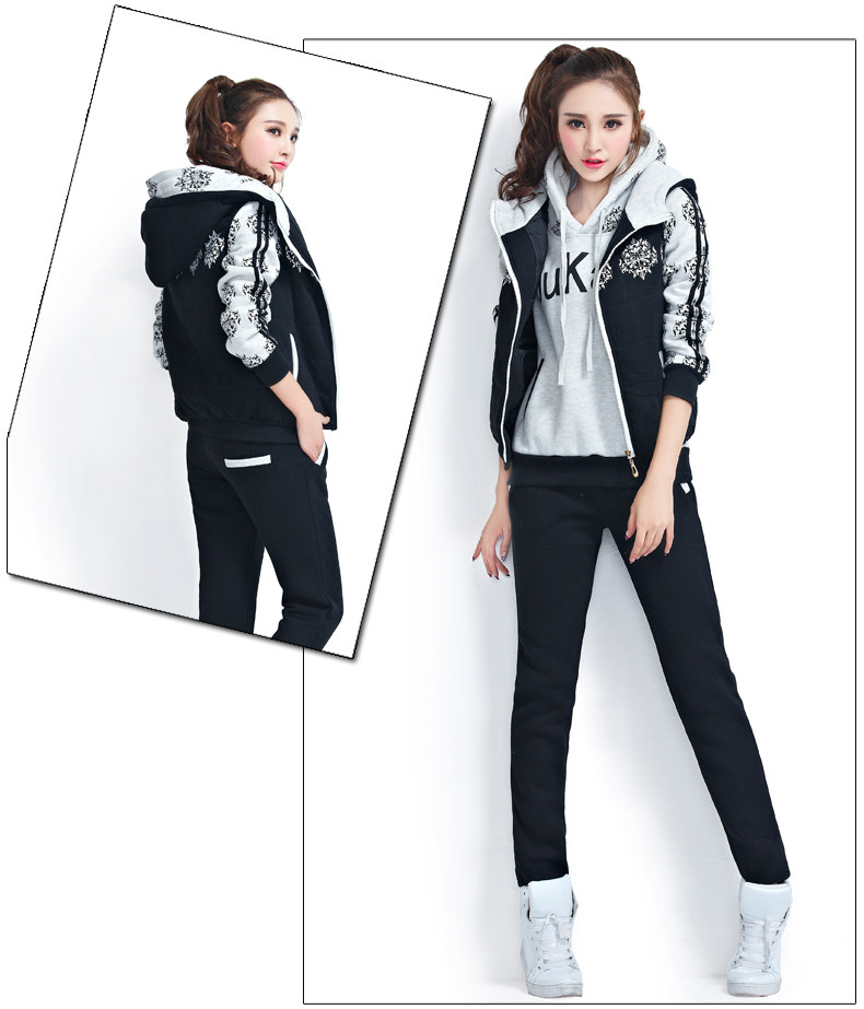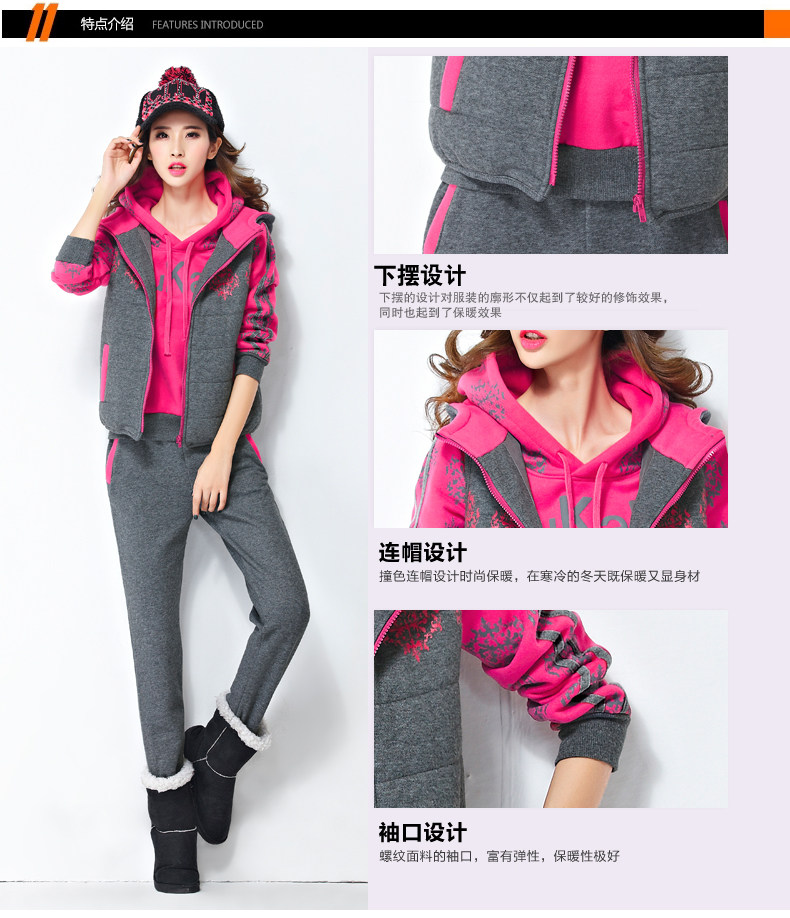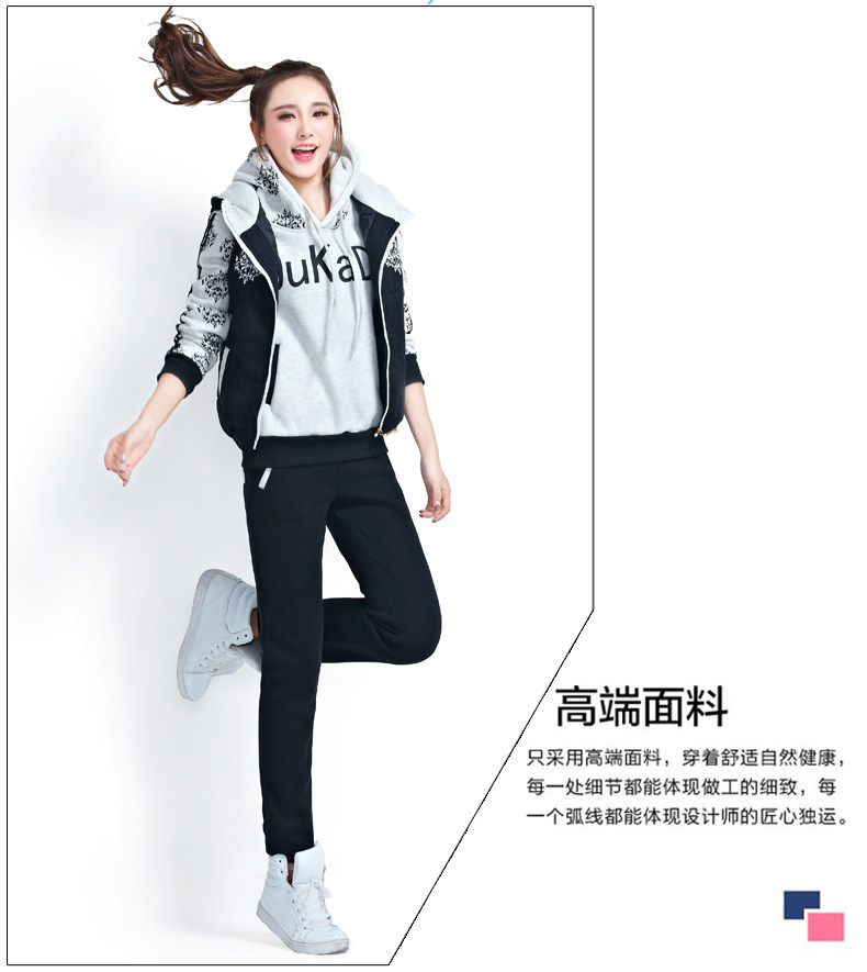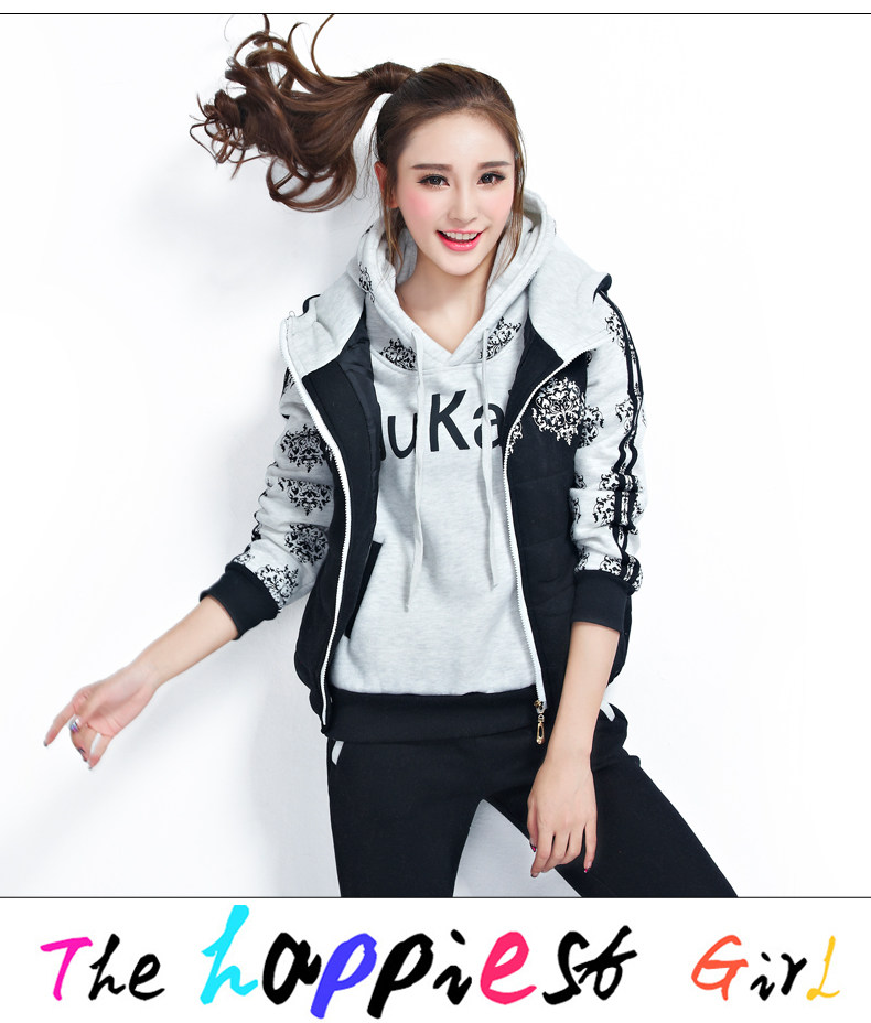 模特實拍韓版新款加厚大碼女裝 學(xué)生裝 修身顯瘦三件套衛(wèi)衣124.00