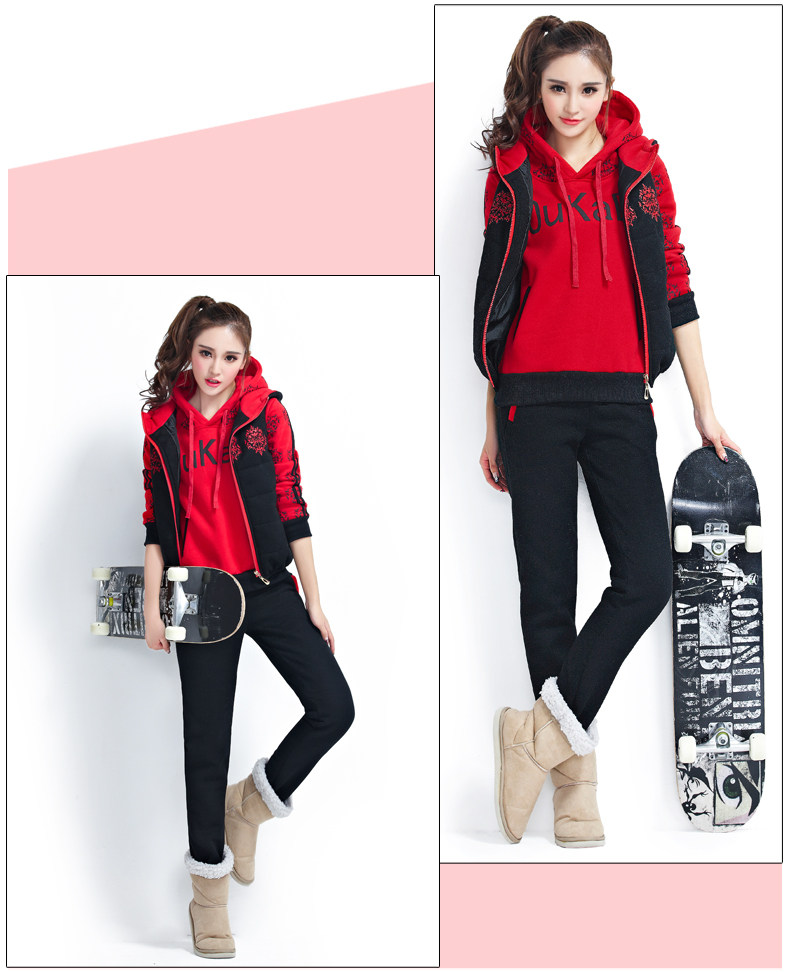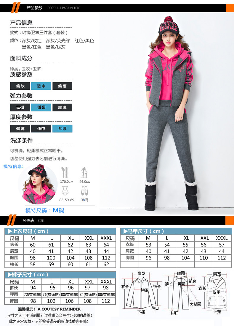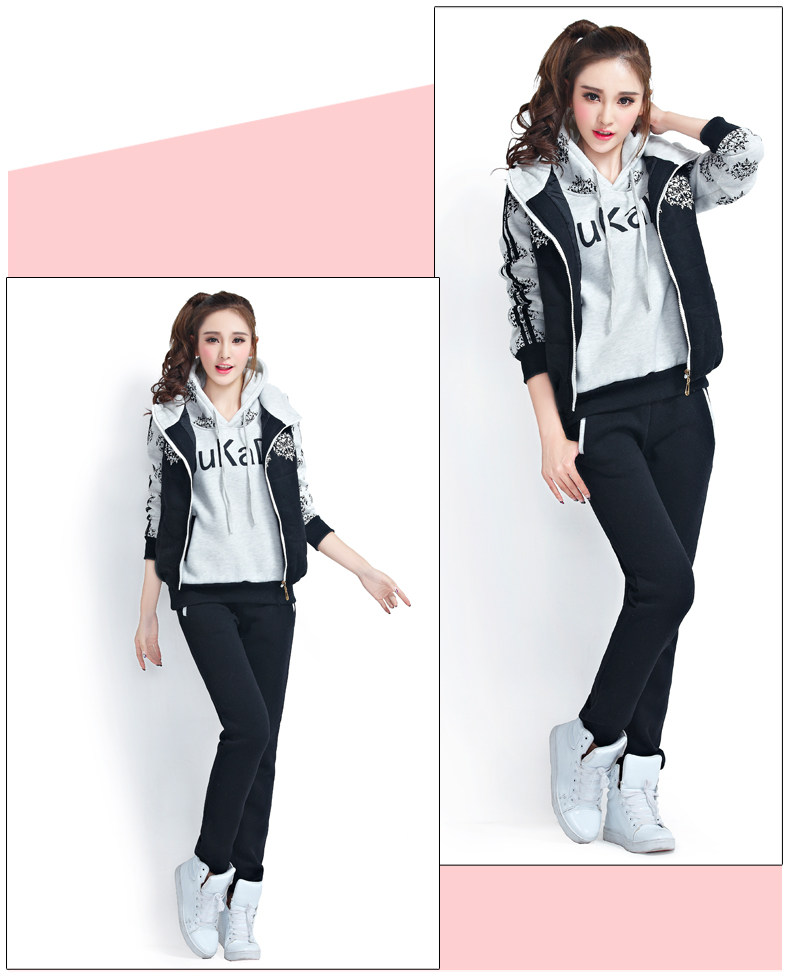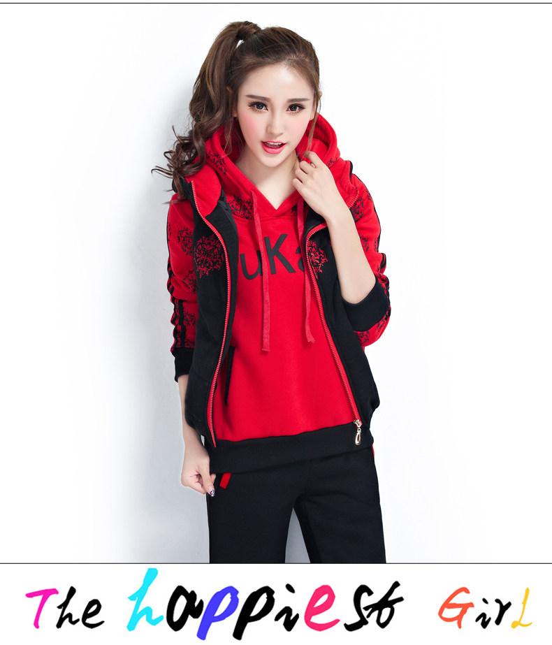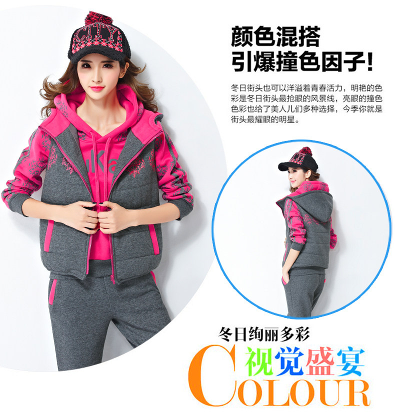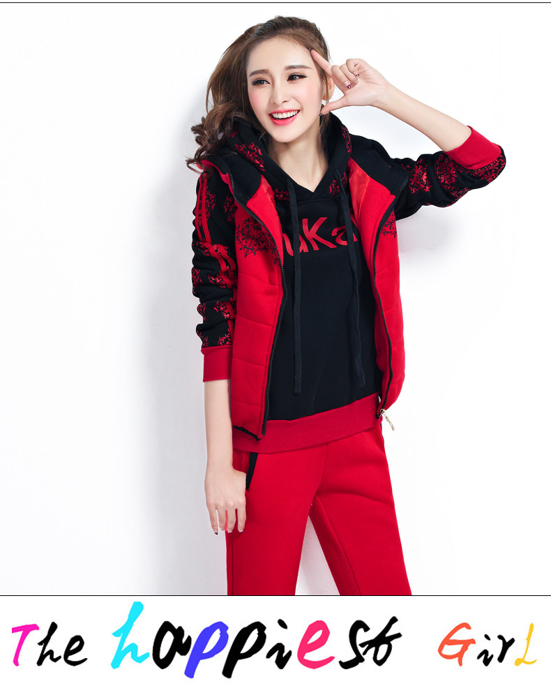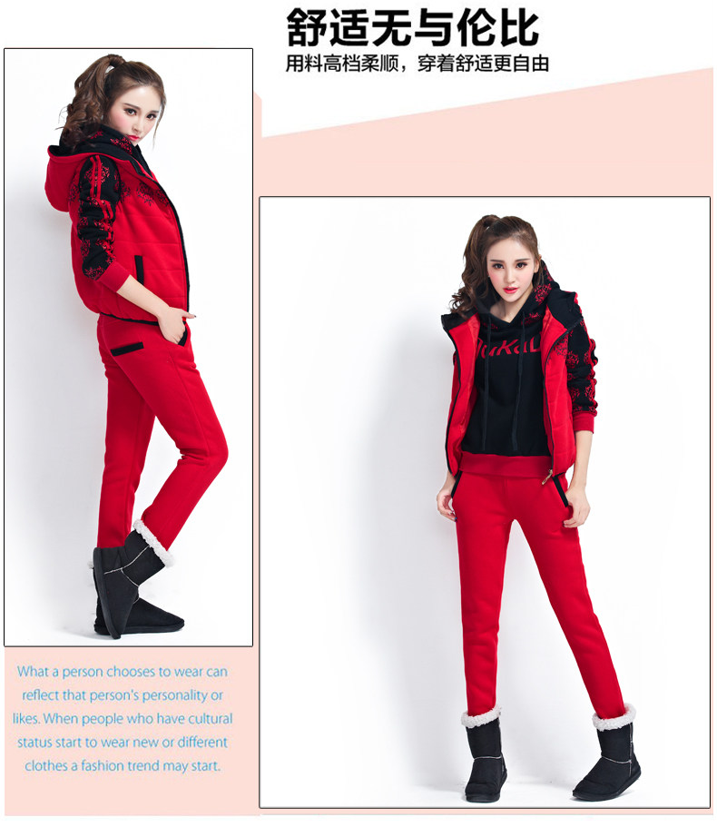 模特實拍韓版新款加厚大碼女裝 學(xué)生裝 修身顯瘦三件套衛(wèi)衣124.00