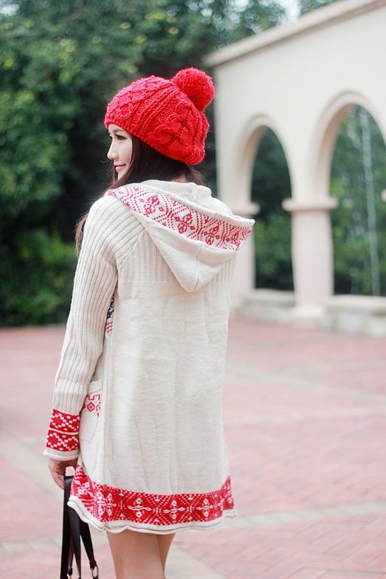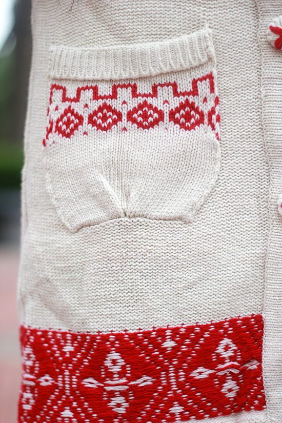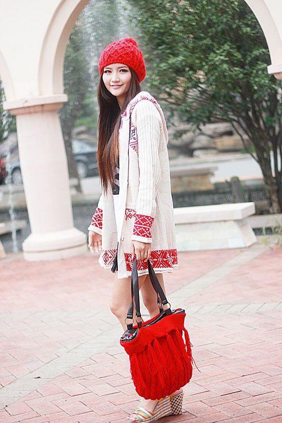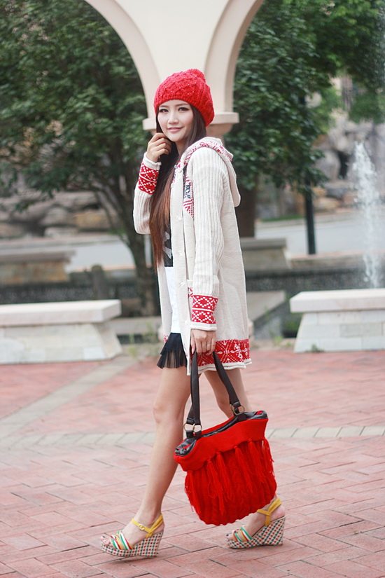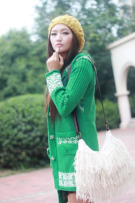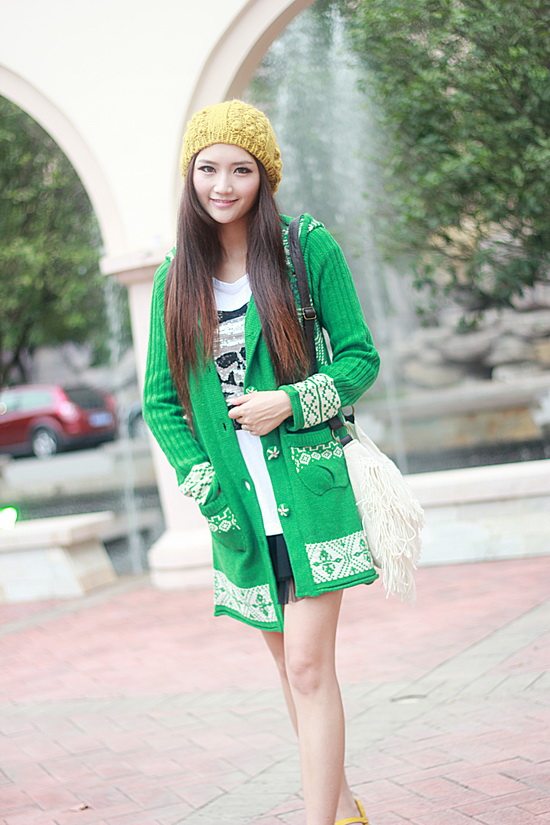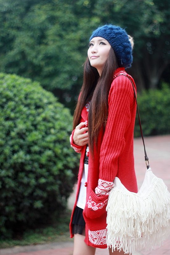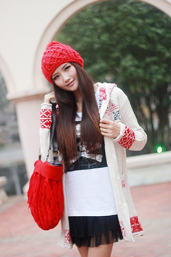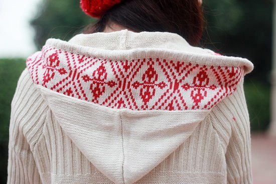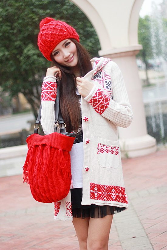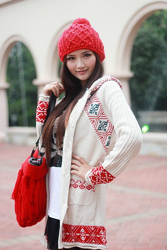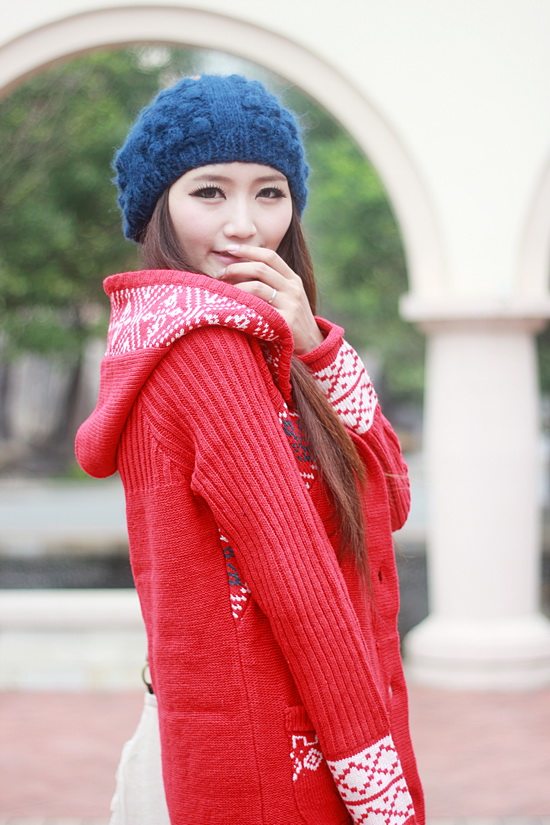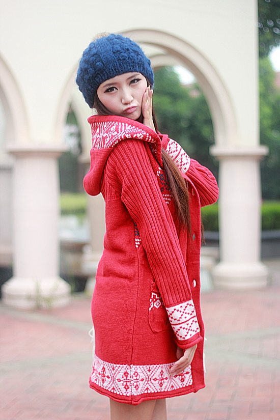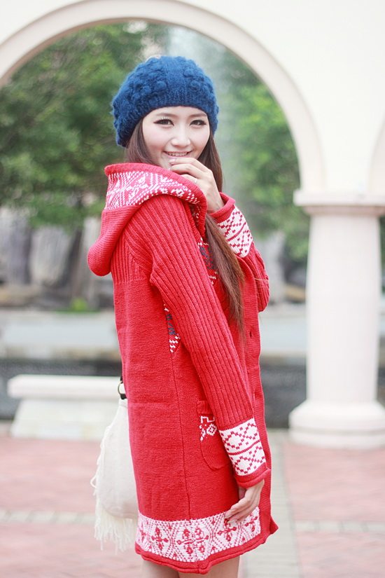 以白色為主色調(diào)看起來比較清新,再配以紅色的伊斯蘭風格的花紋,清新中顯出高雅的氣質(zhì)。后面的小帽帽給人舒適安寧的感覺,俏皮的紐扣仿佛點點繁星點綴在潔白的大地上。整體長版的設計使身材顯的更加的修長簡約中透著可愛。衣袖采用了豎線條的紋路,使得手臂在視覺上有拉長和顯瘦的效果哦。值得一提的是,此款YY袖子還可以當手套使用的。細節(jié)圖稍后補上!