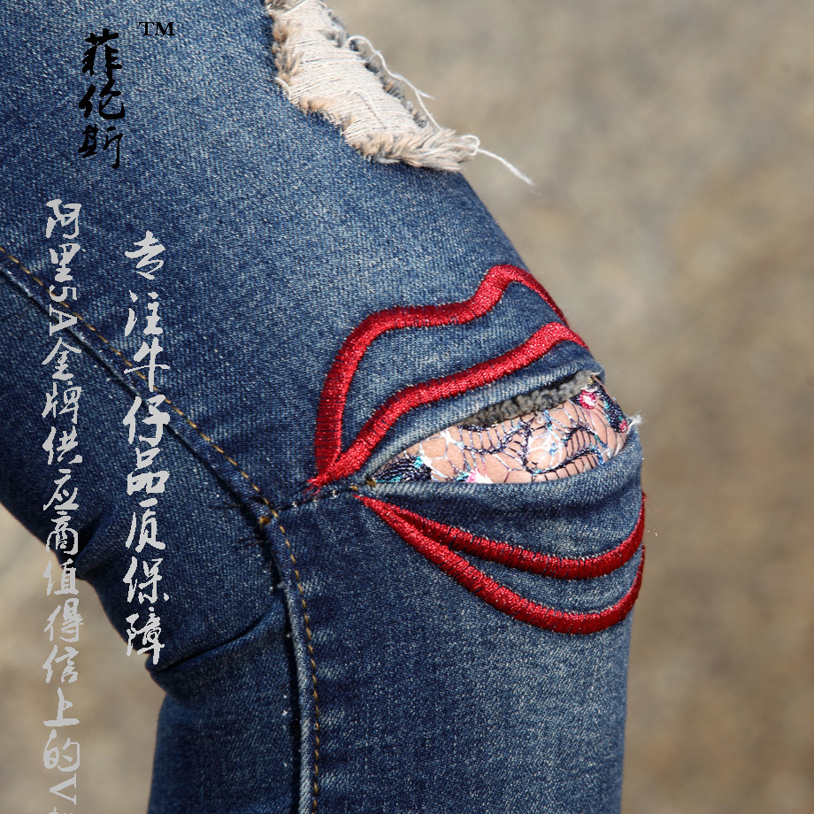 水洗牛仔褲創(chuàng)意款 2014秋裝新款牛仔褲女 爆款 女式牛仔褲鉛筆褲¥:58.00