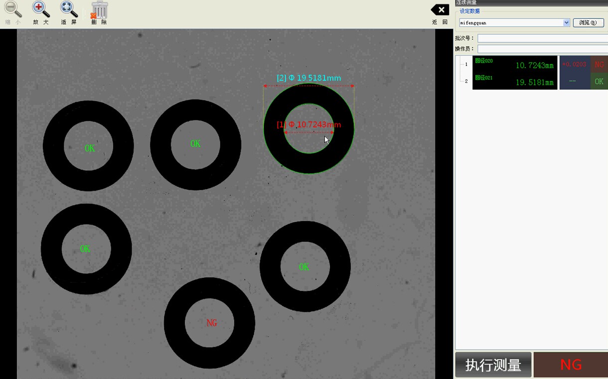 可以一次性在平臺(tái)上放置多個(gè)O型圈,對(duì)放置的位置無(wú)任何要求。軟件對(duì)每個(gè)工件的位置進(jìn)行鎖定,一次性同時(shí)測(cè)量,大大提高測(cè)量效率。