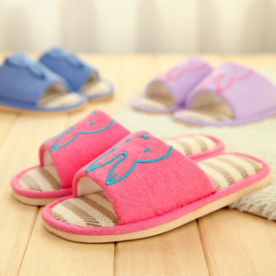 0939批發(fā)韓國可愛兔子室內(nèi)亞麻情侶拖鞋 防滑春季夏季居家拖鞋¥ 7.80元