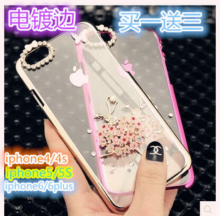 ¥12.00電鍍透明蘋果4s/5s iphone6/6 plus鉆手機(jī)殼外殼保護(hù)套保護(hù)殼批發(fā)