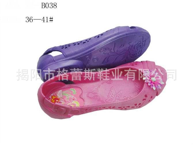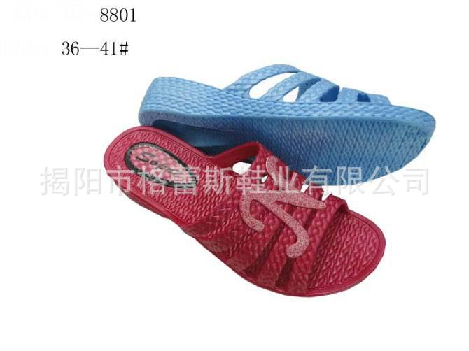 格蕾斯鞋業(yè)生產(chǎn)銷售: PVC拖鞋,吹氣鞋、水晶鞋、黑底鞋等;EVA鞋,花園鞋;布鞋、工藝鞋;顏色齊全,款式新穎。現(xiàn)備有三千多種款式新穎、色澤鮮艷、質(zhì)量上乘的鞋類產(chǎn)品。歡迎訂購(gòu)。