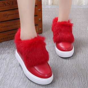 2015冬季新款圓頭高筒馬丁雪地靴女鞋甜美側(cè)拉鏈兔毛加棉高靴平跟¥ 39.00