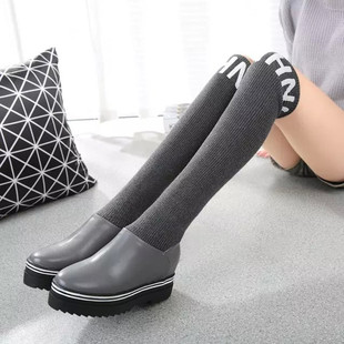 秋冬新款毛線保暖內(nèi)增高長靴字母棉短靴兩穿學(xué)生鞋彈力女靴新品潮¥ 45.00