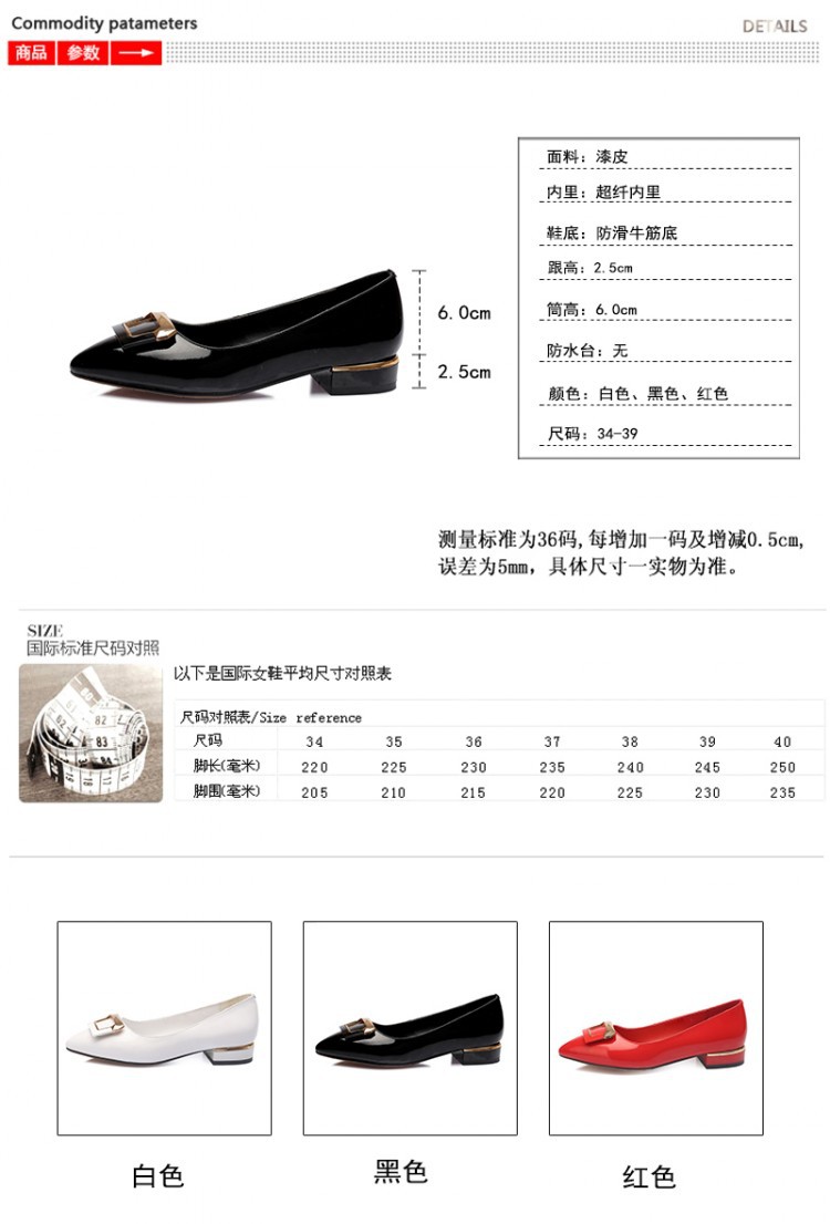 【跟 高】:2.5cm 【圖 案】:純色 【閉合方式】:套腳 【制作工藝】:膠粘鞋【流行元素】:金屬裝飾 【款 式】:豆豆鞋【顏 色】:白色 黑色 紅色 【尺 碼】:34,35,36,37,38,39(正碼) (33/40/41 定做加10元,不退換)