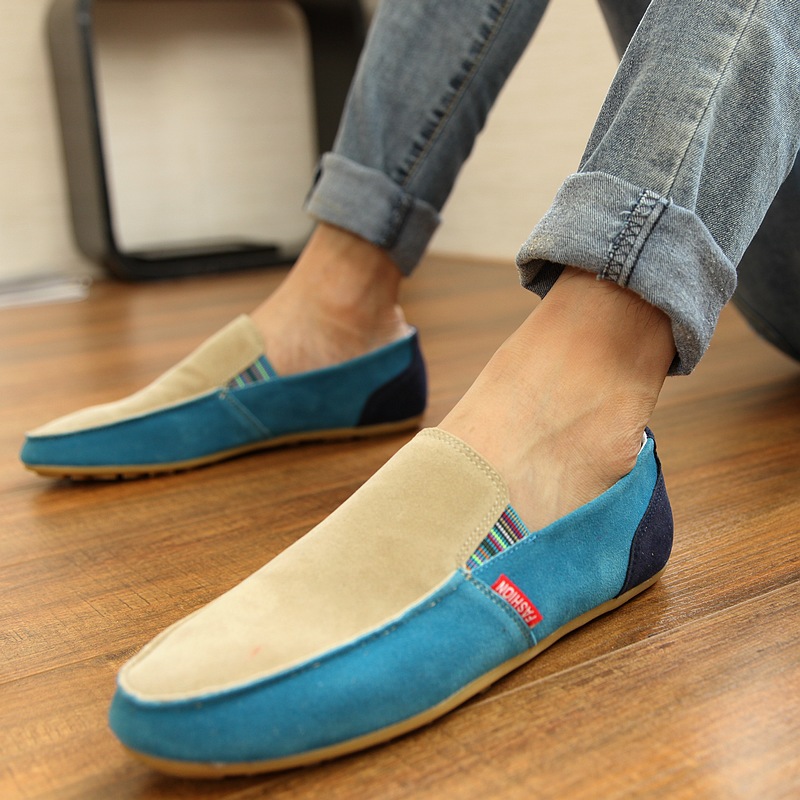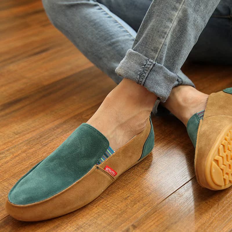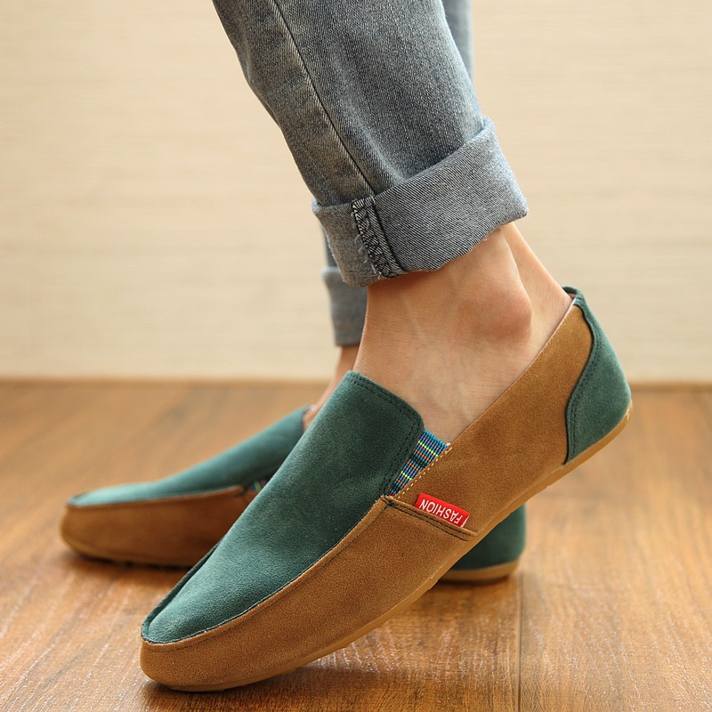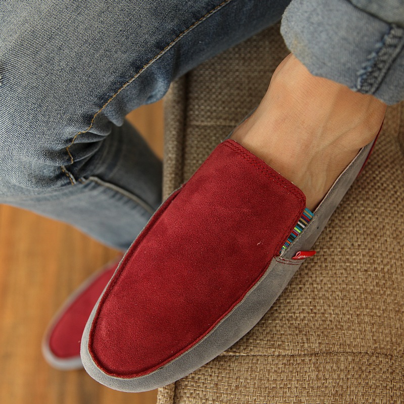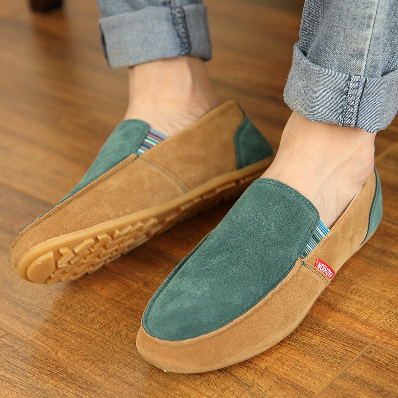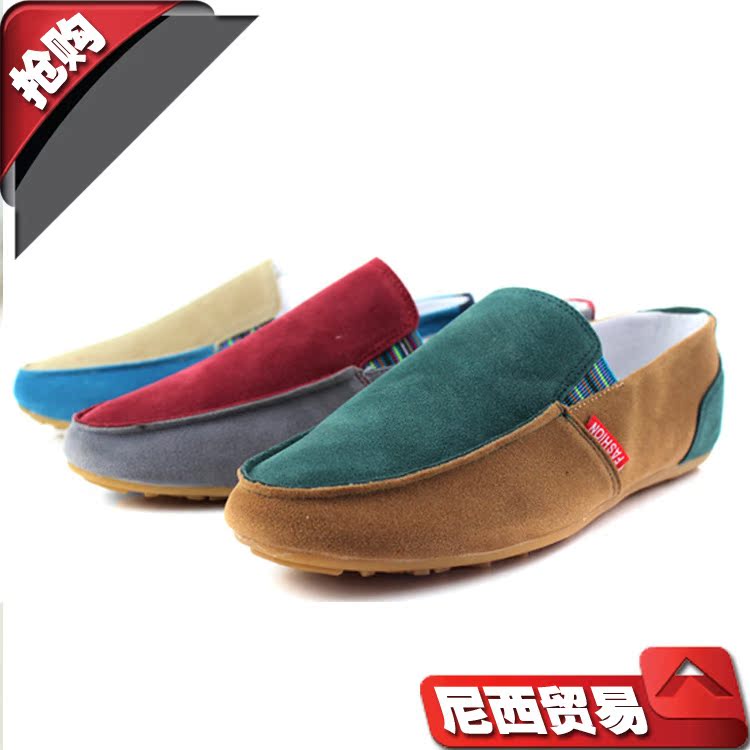 【超值豆豆鞋】夏季新款拼色磨砂皮板鞋套腳懶人鞋潮韓版時(shí)尚男鞋.