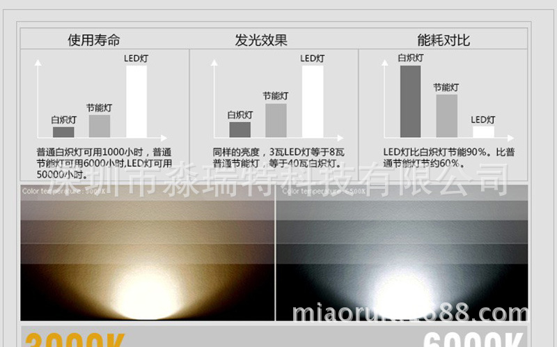7. 進(jìn)口低功耗和高效率的LED具有高顯色指數(shù)和光通量,壽命可以達(dá)到50000小時(shí);