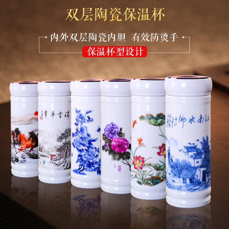 陶瓷水杯,喝出好身體。閑來喝茶,溫暖的不是自己,而是陪伴的家人。陶瓷保溫杯主要在其工藝性和藝術效果,與真空保溫杯的保溫效果有一定的差距。景德鎮(zhèn)市合元陶瓷有限公司專業(yè)定做禮品陶瓷保溫杯多款任挑,總有您想要的。圖案有:富貴花開、國色天香、和為貴、蝴蝶幽蘭、江南水鄉(xiāng)、馬到成功、青山綠水、青田倉富、清風荷韻、瑞雪豐年、笑口常開、依山傍水。全方位感受合元真品質,禮品陶瓷保溫杯給健康一份新的感受。禮品陶瓷保溫杯精湛工藝、仿水晶杯蓋貼合杯口,中西合璧,精益求精。每次新品的推出,都要歷時幾月,投入設計師大量的心血將美得形態(tài)呈現給您。禮品陶瓷保溫杯倒立不漏水,超抗菌內膽,易清洗。禮品陶瓷保溫杯360°滴水不漏,N次的防漏測試,讓您使用更放心;無數次的實驗重組,為的就是您的品質享受,貼心、安心;獨特的設計,雙層隔熱只為了您的安全。禮品陶瓷保溫杯優(yōu)質材料,色彩艷麗,食品接觸配件。密封性好,倒水順滑不外濺。杯身色彩飽滿,畫面用筆豐富,層次分明,雙層隔熱,使用更加安全。杯底簡約超耐磨,極冷極熱不會破裂,一體成型,使用更加方便。長久保溫,讓您無論在哪都能隨時來上一杯。