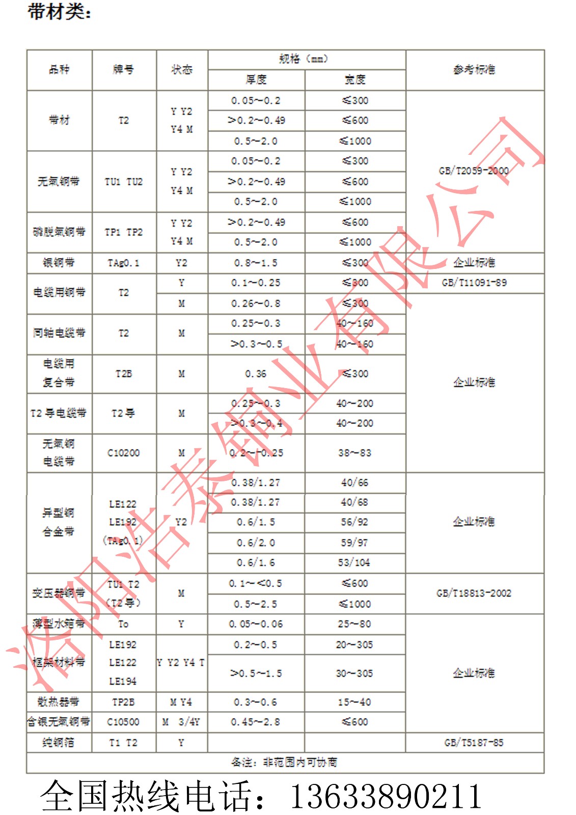 洛陽(yáng)浩泰銅業(yè)有限公司可生產(chǎn)的紫銅帶規(guī)格有